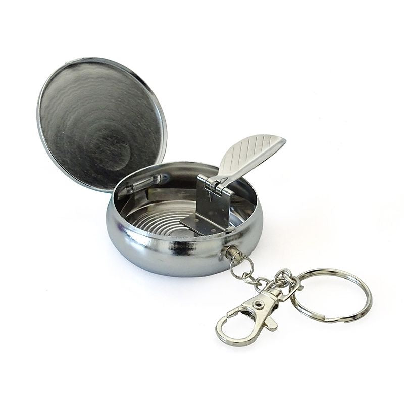 The bag ashtray is in chrome and has both a key ring and a small carabiner to attach it to something you remember