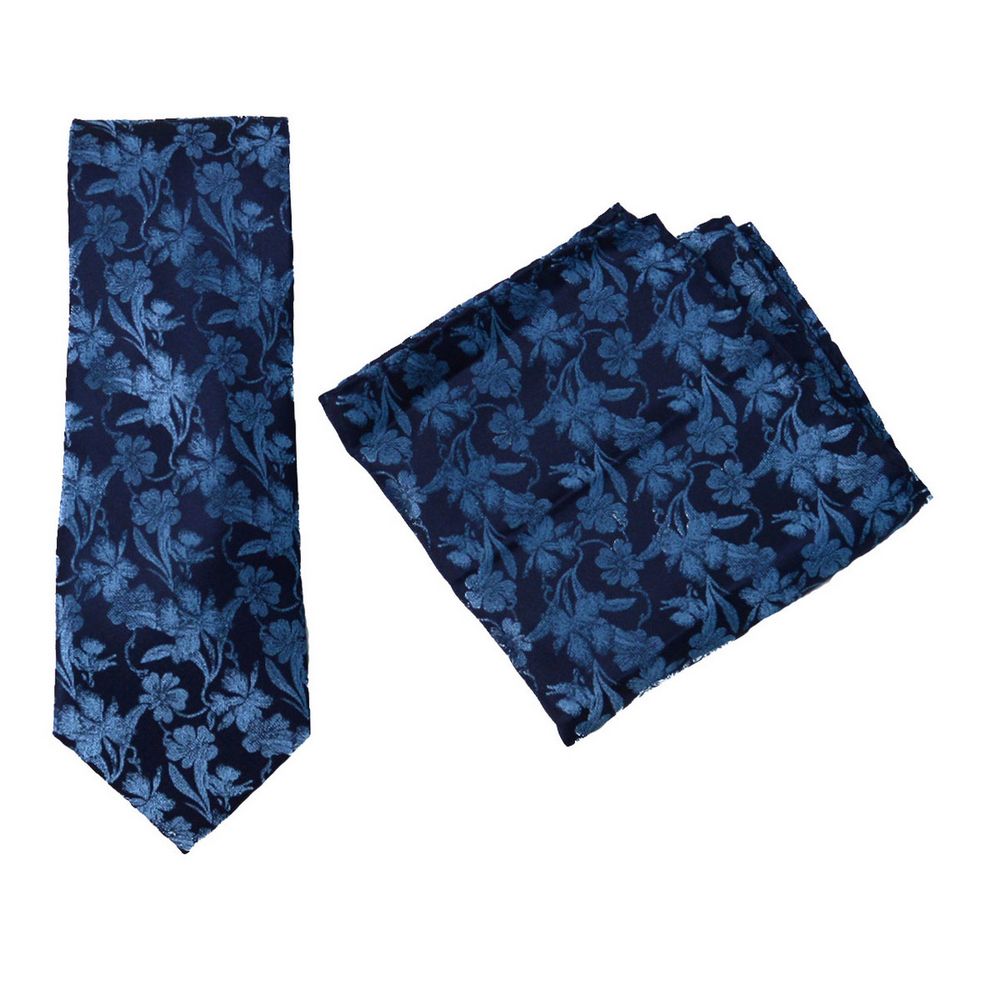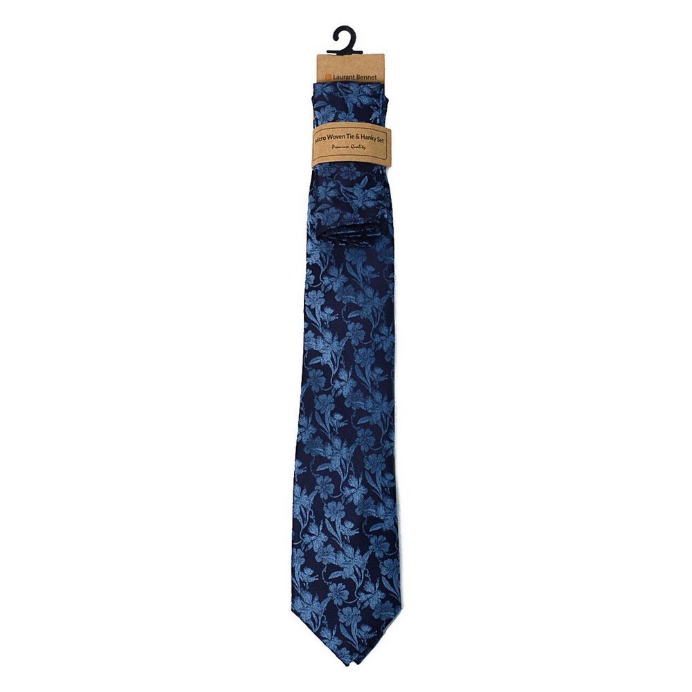Laurant Bennet Blue Floral Microfiber Poly Woven Tie & Hanky Set