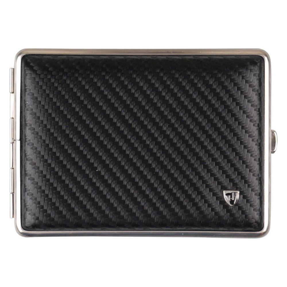 Carbon Look Cigaret Etui - 18 100S - Sort Læder Sølv - Cigaret Etui fra vom Hofe hos The Prince Webshop