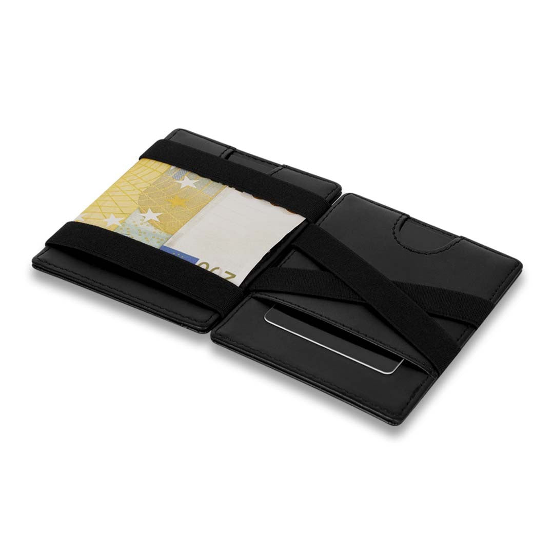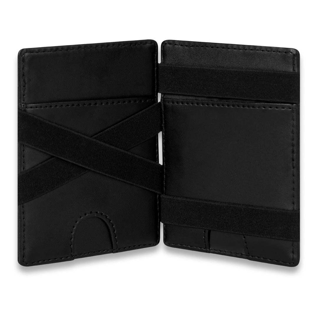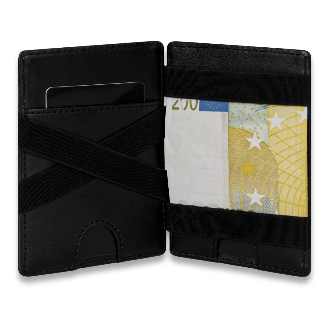 Elegant men's leather wallet with double-sided slim card holder for 5 cards - and double-sided banknote compartment with wide elastic bands.