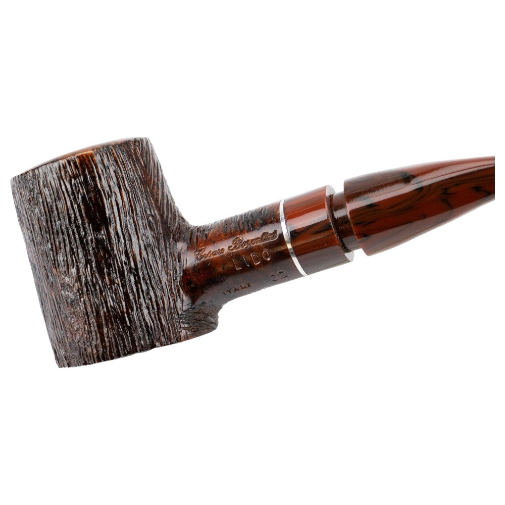 Cesare Barontini piber fremstilles i Livorno, Italien af bruyererod og har et akryl mundstykke med plads til et 9 mm filter.