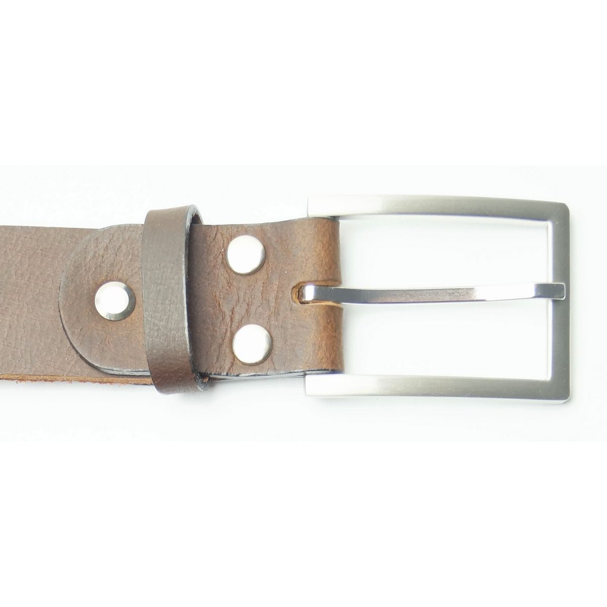 Tummanruskea herrasmiesten nahkavyö, klassisella neliömäisellä vaalealla solkilla
