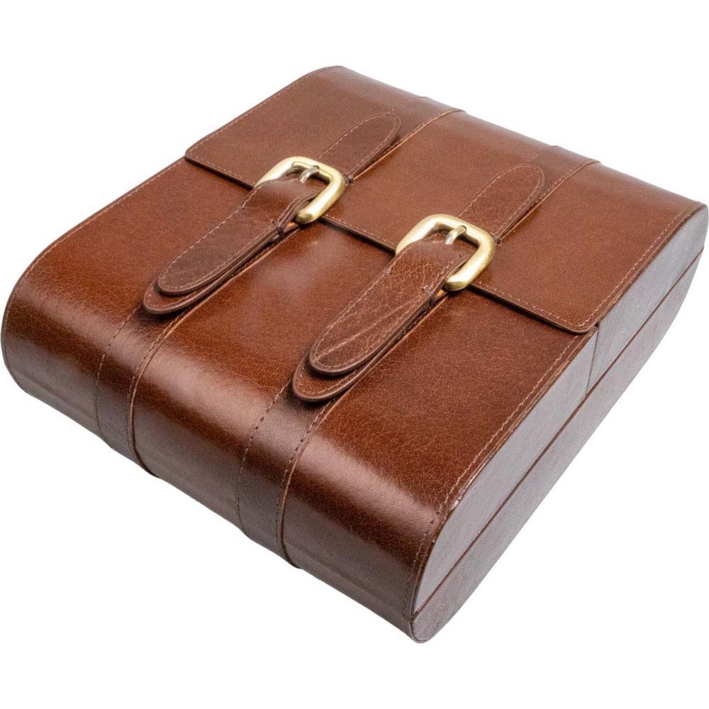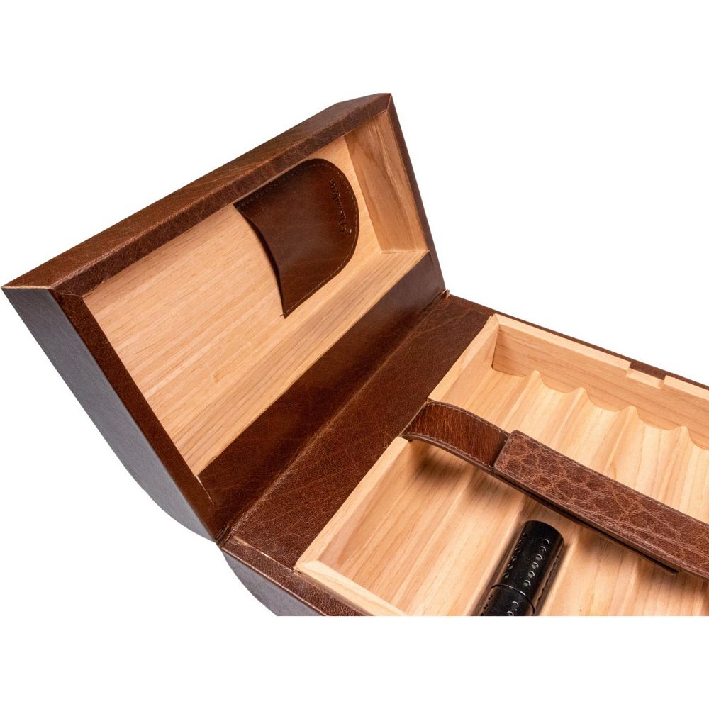 Tämä puhvelinahasta valmistettu kostea on silmäpöydän silmäpöydällä tai nurkan hyllyllä. Taitettavan kannen takia sen avulla voit katsoa 8-10 sikaria, joita voit varastoida tähän kauneuteen.