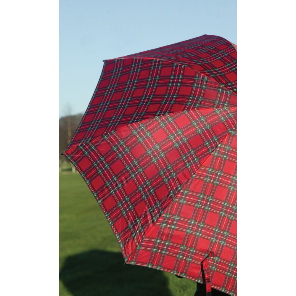 Golfin omasta maasta tulee tämä värikäs golf -sateenvarjo, jossa on punainen tartaani.